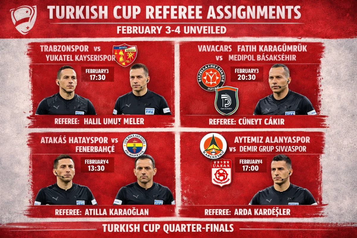 The Central Referee Committee has revealed the officials for the Turkish Cup matches on February 3 and 4, featuring key clashes between top-tier and lower-division teams. These appointments highlight experienced referees handling high-stakes encounters in the competition’s third week.